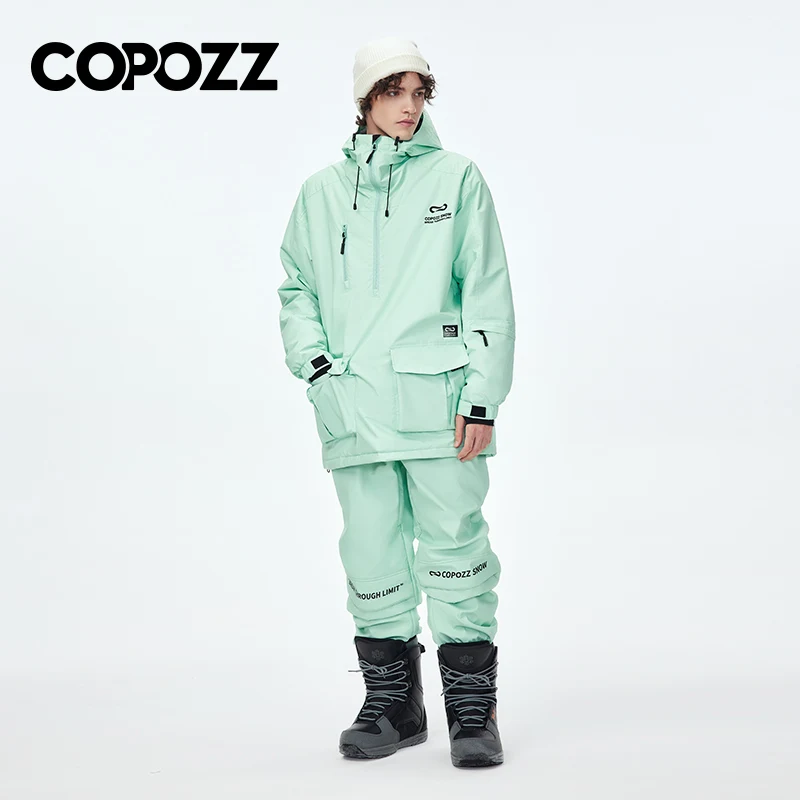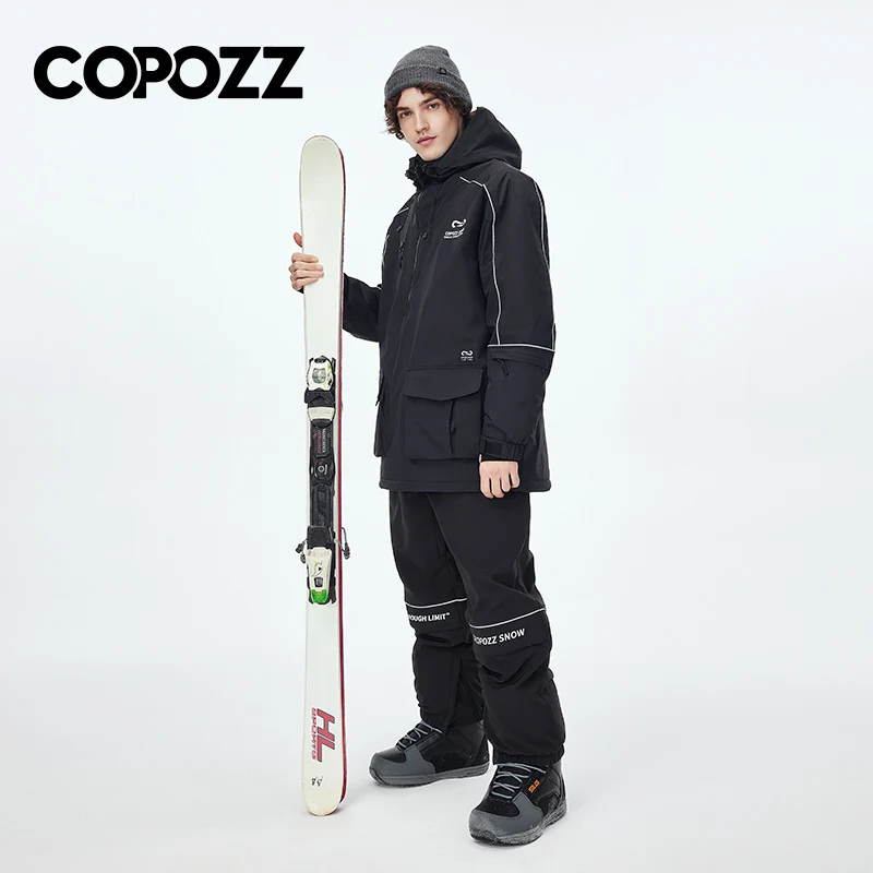 COPOZZ New Waterproof Thicken Ski Suit Women Hooded Windproof Ski Jacket Men Winter Sports Warm Ski Pants Outdoor Snowboard Ski Coat