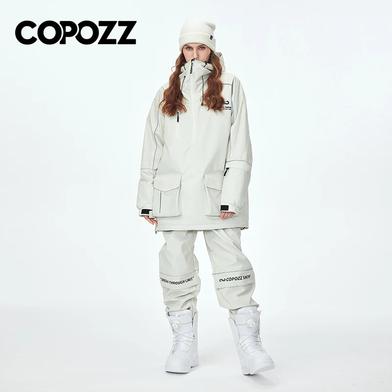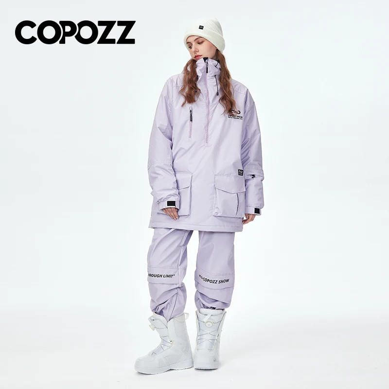 COPOZZ Waterproof Thicken Ski Suit Women Hooded Windproof Ski Jacket Men Winter Sports Warm Ski Pants Outdoor Snowboard Ski Coat